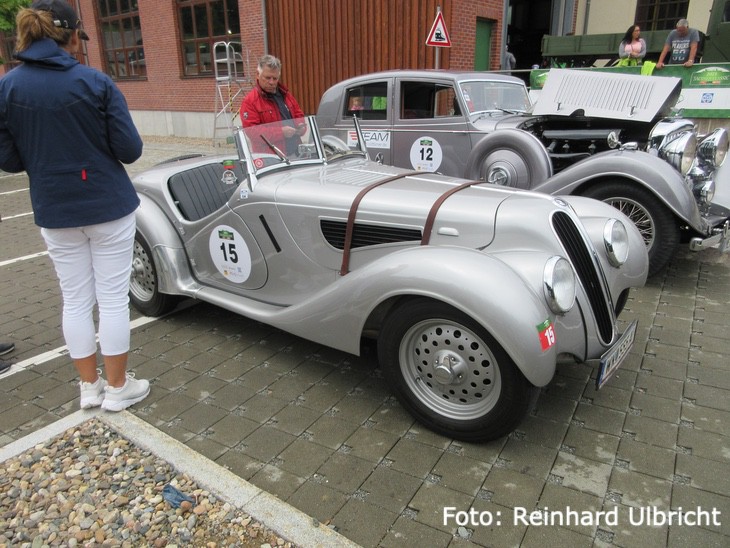 In der Zwischenzeit waren die ersten Fahrzeuge bereits im Bahnhof Schmalzgrube eingetroffen. Dem Sieger dieser Wertungsprüfung winkte neben dem Pokal der Sachsen Classic ein von der IG Preßnitztalbahn e.V. gestifteter Sachpreis. Der Autor hatte die Ehre, diesen im Rahmen der Abschlußveranstaltung mit Siegerehrung an Herrn Dr. Pinkwart (BMW 319/1, Baujahr 1935) zu überreichen.